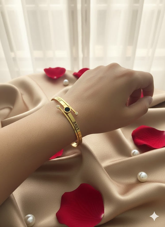 Gold "LOVE" Bypass Bangle – Tarnish-Free Stainless Steel Luxury Inscribed Bracelet