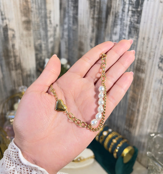 Pearl & Heart Fusion Charm Bracelet – 18K Gold Plated, Anti-Tarnish & Waterproof