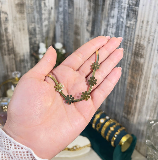 Golden Daisy Herringbone Bracelet – 18K Gold Plated, Anti-Tarnish & Waterproof