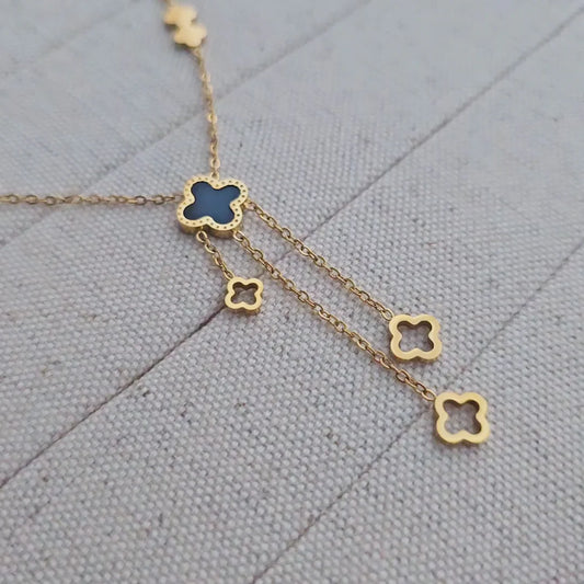 Black & White Clover- 18k Gold-Plated Necklace