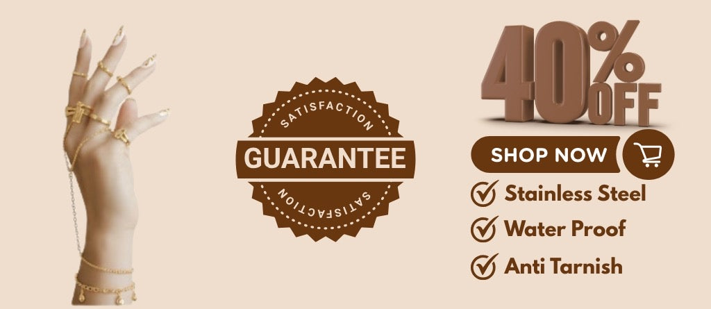 A: Our jewelry is crafted from high-quality stainless steel and plated with 18k gold. All pieces are hypoallergenic, water-resistant, and designed to last.