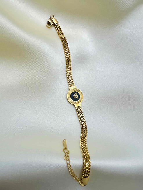 18K Gold Plated Textured Circular Emblem Bracelet