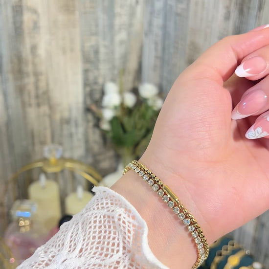 Dazzling Crystal Tennis & Gold Box Chain Bracelet Set – Anti-Tarnish & Waterproof