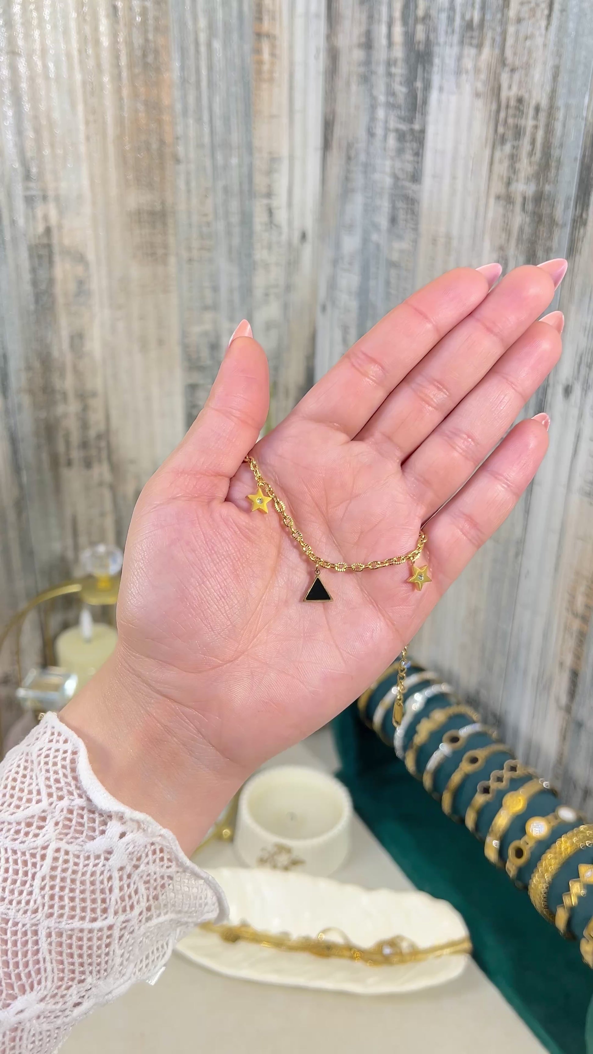One of the standout features of this waterproof bracelet is its thoughtful design that marries beauty with practicality. The charm bracelet includes delicately crafted star and triangle charms that add a whimsical touch to your outfit. Designed with versatility in mind, this piece can be dressed up for special occasions or worn casually for a day out. Its lightweight construction ensures comfort during wear, making it an ideal accessory for daily use or special events alike.