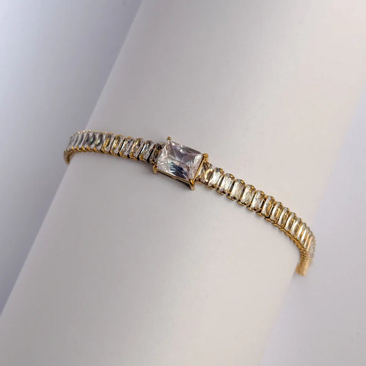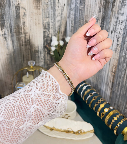 Dazzling Crystal Tennis & Gold Box Chain Bracelet Set – Anti-Tarnish & Waterproof