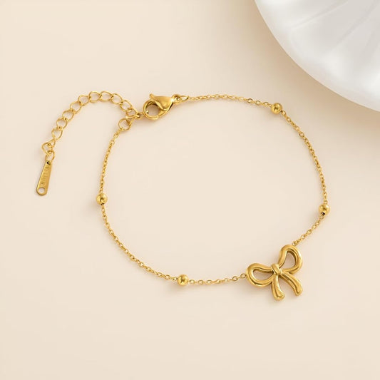 Anti-Tarnish Waterproof Bow Bracelet - Delicate Gold Chain with Ribbon Charm