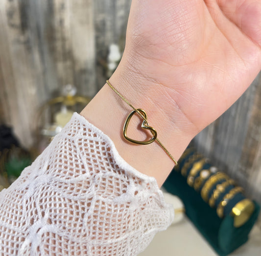 Dainty Heart Outline Chain Bracelet – 18K Gold Plated, Anti-Tarnish & Waterproof